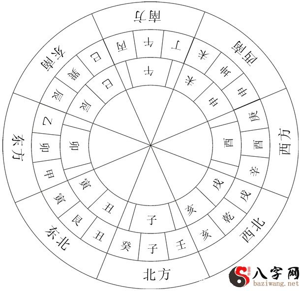 基本原理:十二地支相匹配的位置是十二地支均分360°,并不是东、西、南、北、东南方、东北、西北、大西北八方(详二十四山、八方和十二地支地理位置图)。